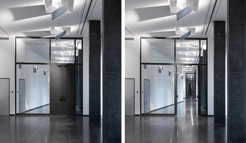 The secure entrance units, fire-resistant during one and a half hours were made personalised, requiring site notices adapted to this type of work.