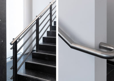 The locker room suspensions, the metal GC handrails and the cladding are made of 320 stainless steel.