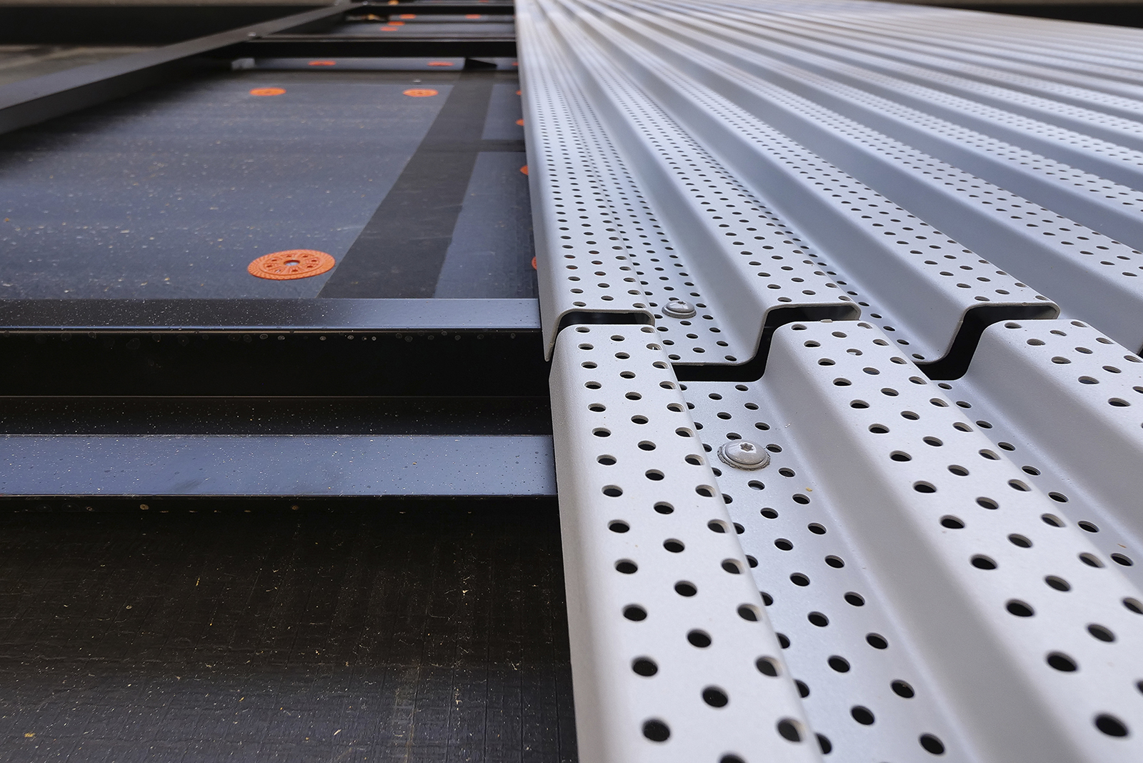 Architectes Associés invited FEREX to develop a metal cladding fromaluminium sheet metalwith a grooved and perforated surface.